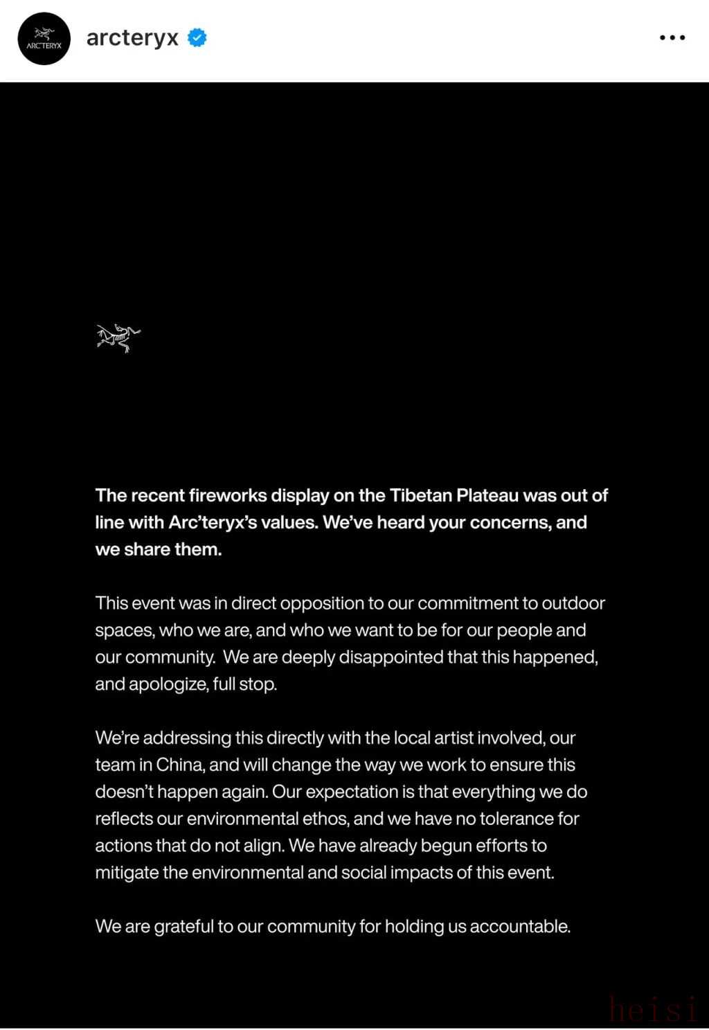 始祖鳥海外公告則顯示,“近期在青藏高原舉辦的煙花表演活動與始祖鳥的品牌價值觀不符。我們已關注到大家的擔憂,我們同樣對此深感關切。該事件直接違背了我們對于戶外空間的承諾、我們的品牌本質,以及我們致力于為用戶和社區(qū)創(chuàng)造的品牌形象。我們對此深感遺憾,并在此鄭重致歉?!?/p>
