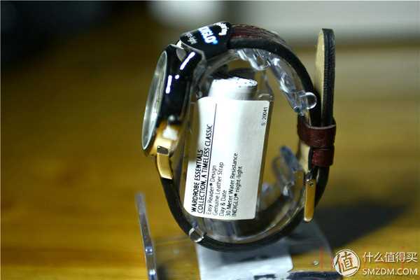 從側(cè)面看看表的厚度,中間那個(gè)標(biāo)簽里封著的是說明書,我沒興趣打開來看,因?yàn)榫瓦@么一塊表還需要看說明書的話,我這智商也沒必要再這里寫原創(chuàng)了。