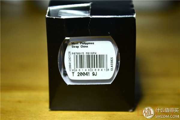 包裝盒的側(cè)面開一個(gè)小窗,貼著條形碼和型號(hào),其實(shí)貼條形碼的地方是里面的塑料表架的底座,其實(shí)這個(gè)塑料表架是個(gè)很雞肋的東西,漂洋過海來到中國,基本到手就是壞的,中間轉(zhuǎn)三手快遞,也不知道是哪家出的毛病。