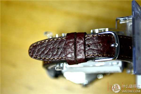 表帶是來自中國的牛皮表帶,比較厚實(shí),紋路好看,走線也很工整,看這牛皮,我也分不清是頭層還是二層三層了,反正是皮的,我個(gè)人來說比較喜歡這樣的真皮材質(zhì)的表帶,在這里我要提醒那些覺得金屬表帶上檔次的人,如果你經(jīng)歷過512地震,當(dāng)你被埋在廢墟里發(fā)現(xiàn)表帶可以吃下去的時(shí)候,你就會(huì)想明白,金屬表帶算個(gè)錘子!