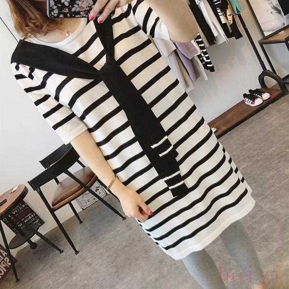中長款短袖連衣裙。黑白條紋的設計,很時尚也很有味道~中長款的長度,恰到好處,任何妹紙們都可以輕松駕馭~寬松的版型,很能藏肉哦更顯瘦!絲麻的面料,很親膚,舒適透氣,給你最好的舒適度哦~