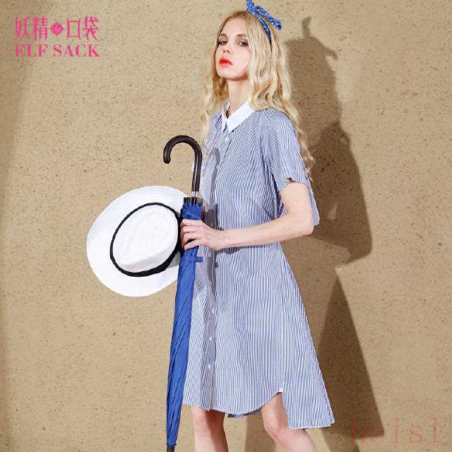 妖精的口袋P腦袋里的舊餅干夏裝歐美短袖露背條紋連衣裙中長裙女