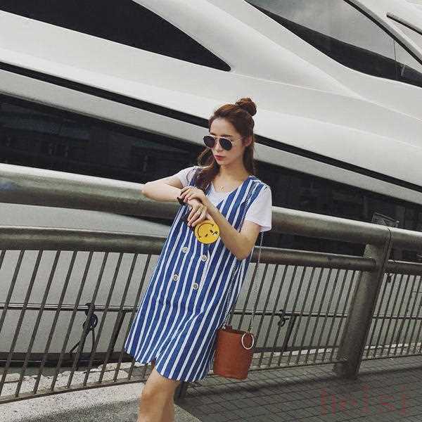 小清新條紋連衣裙。條紋元素經(jīng)典百搭,復古的藍白條紋,第一眼看就很小清新很顯氣質(zhì)~小V領設計,這個夏天讓你露出性感的鎖骨,拉長你的頸部線條,還顯臉小哦~純棉的面料,舒適親膚~款式也極具時尚感。