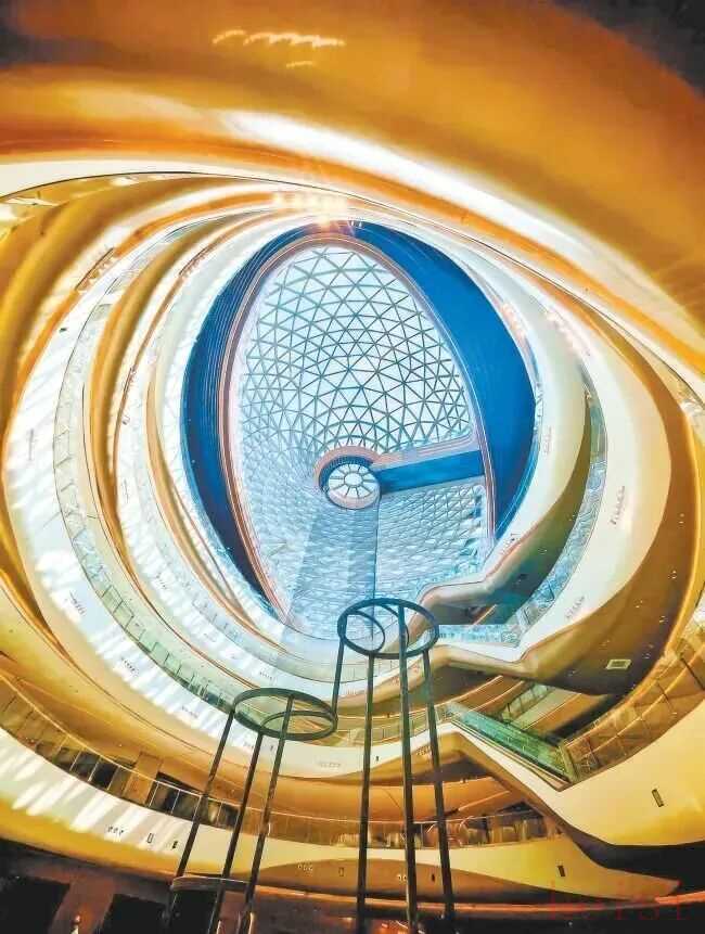 光之境穹頂呈螺旋綻放形態(tài),未來將有屏幕“光帶”盤旋而上;水之境中庭藏著30米高的“空中瀑布”,水流與燈光交織成夢幻畫面;還有屋頂花園與退臺景觀,逛累了能坐下來感受自然氣息。