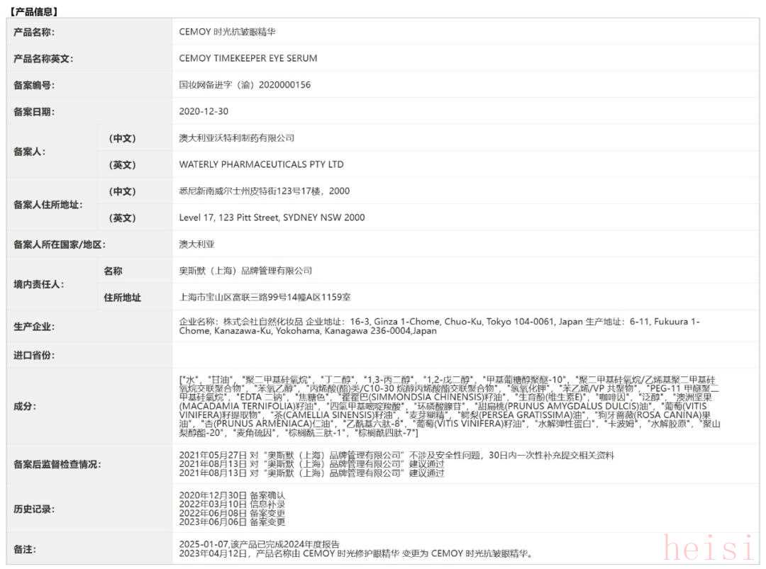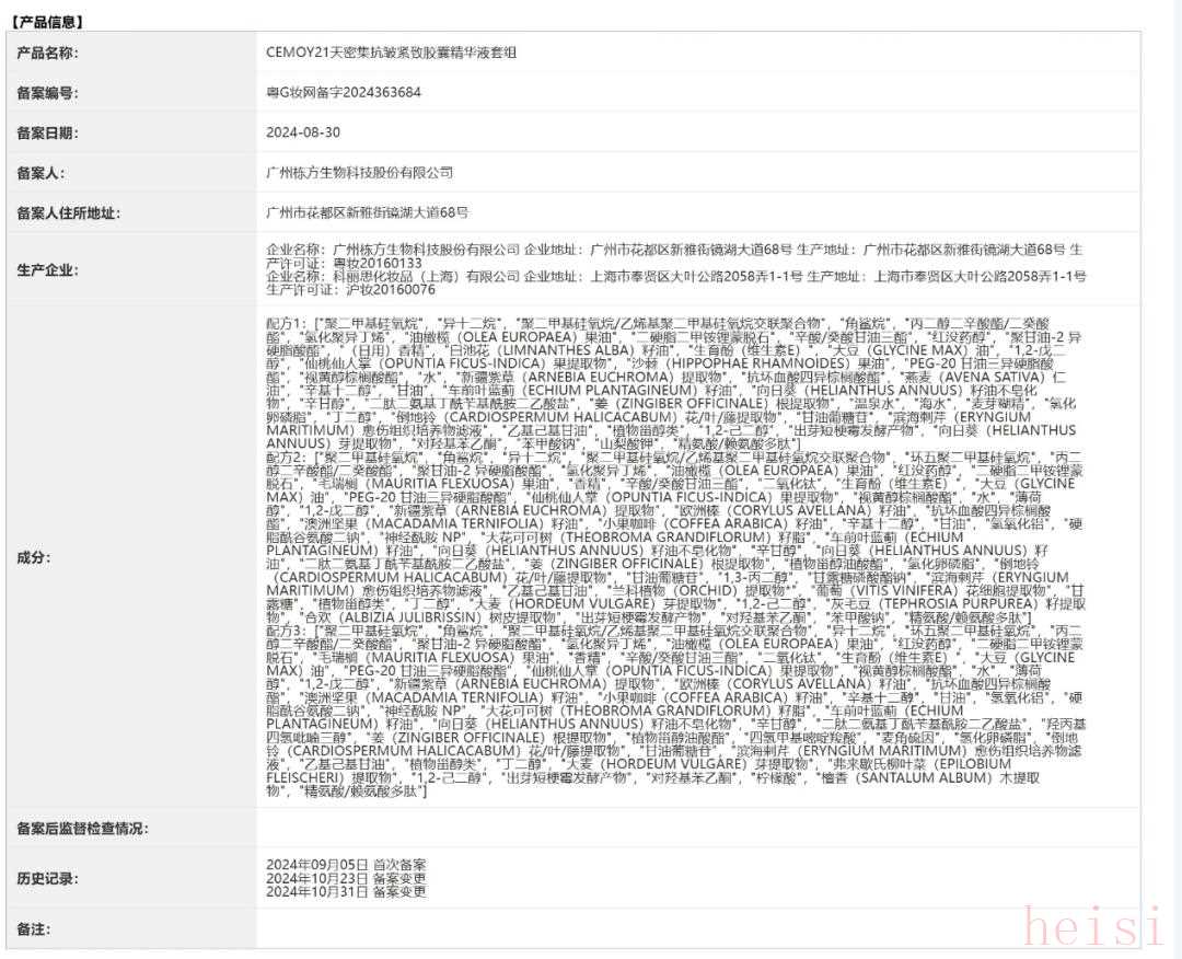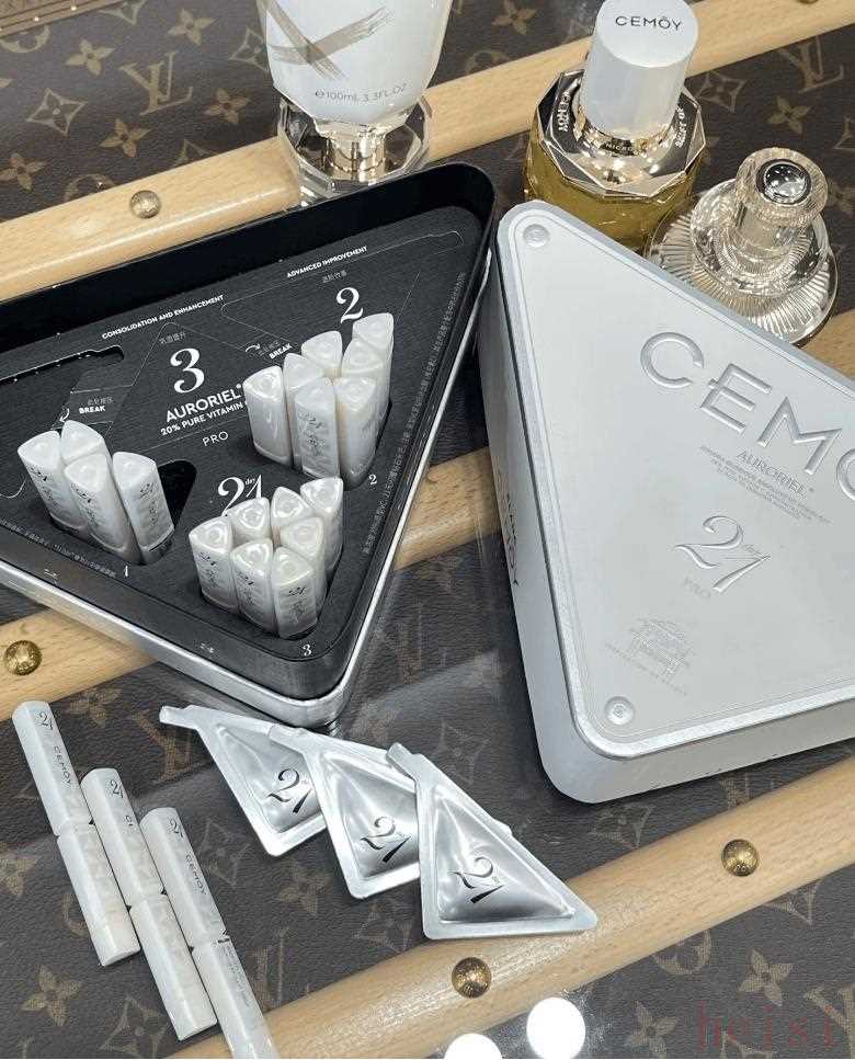 (圖 / 國家藥監(jiān)局)以21天密集抗皺緊致膠囊精華為例,其核心成分既有來自植物的萃取物如葡萄花、波斯合歡、槐蘭花等,也有玻色因、依克多因、麥角硫因等主流的合成抗衰成分,疊加創(chuàng)新的三階精華套組分階使用,實(shí)現(xiàn)修復(fù)、煥活的功效。除抗皺精華油之外,澳詩茉的重要單品或產(chǎn)品組合還有白金水乳、藍(lán)金水乳、防曬霜、洗面奶等,但整體仍以單品、單一套組形式發(fā)展,產(chǎn)品的系統(tǒng)化布局并不明顯,不同系列之間的功效區(qū)別也不顯著。無論是精華油,還是白金系列和藍(lán)金系列,均有抗老、淡紋等功效。21天密集功效系列,除21天抗皺膠囊精華之外,還在今年新推出了21天澳白VC精華液等產(chǎn)品,主要功效為美白、煥亮,在抗老的基礎(chǔ)上進(jìn)行了新的功效拓展。但該款產(chǎn)品核心成分包括20%原型VC、5%VC復(fù)合衍生物,因?yàn)楣πл^為強(qiáng)勁,初次使用需要按3天1次的頻率建立皮膚耐受性,出現(xiàn)刺激反應(yīng)需減少用量,還需避免與A醇類、酸類、藍(lán)銅勝肽類產(chǎn)品同時使用。在使用方式上也較為繁瑣,需要先將VC粉棒掰斷后倒于手心,再將水油精華液與VC粉混合至透明狀后使用。該產(chǎn)品也同樣以21天為周期、分三個階段使用,每七天所對應(yīng)的產(chǎn)品也有所不同。