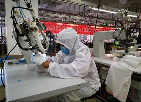 格雷時(shí)尚一線工人正在給防護(hù)服壓膠條