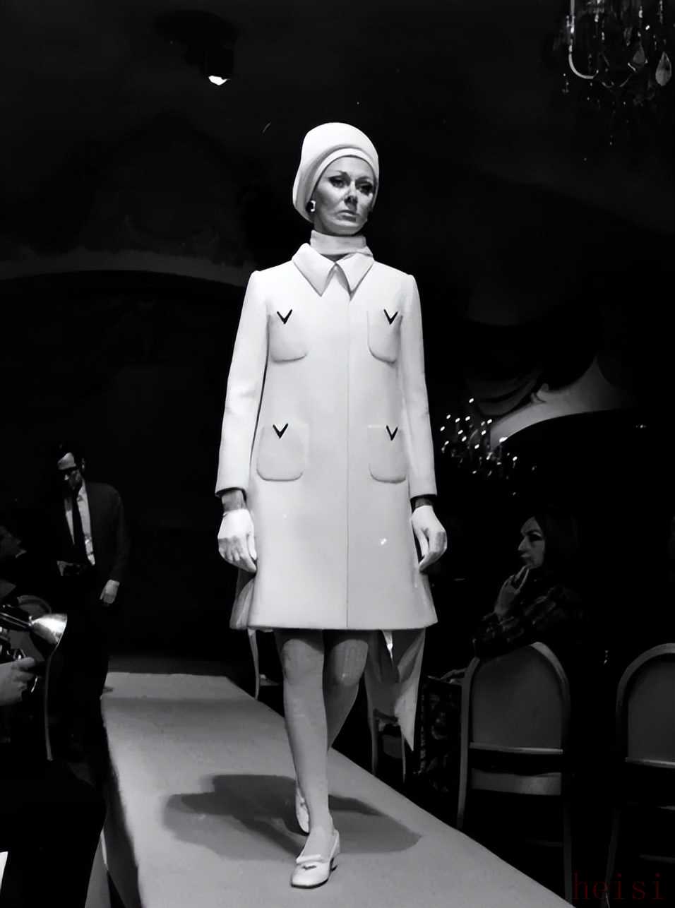 大秀中,首次被融入服裝設(shè)計(jì)的VLogo,也成為一種“逆襲宣言”。不僅在當(dāng)時(shí)激烈的競爭環(huán)境中,為品牌注入了強(qiáng)大的信心。還受到肯尼迪夫人杰奎琳等名流青睞,逐漸成為流行符號。