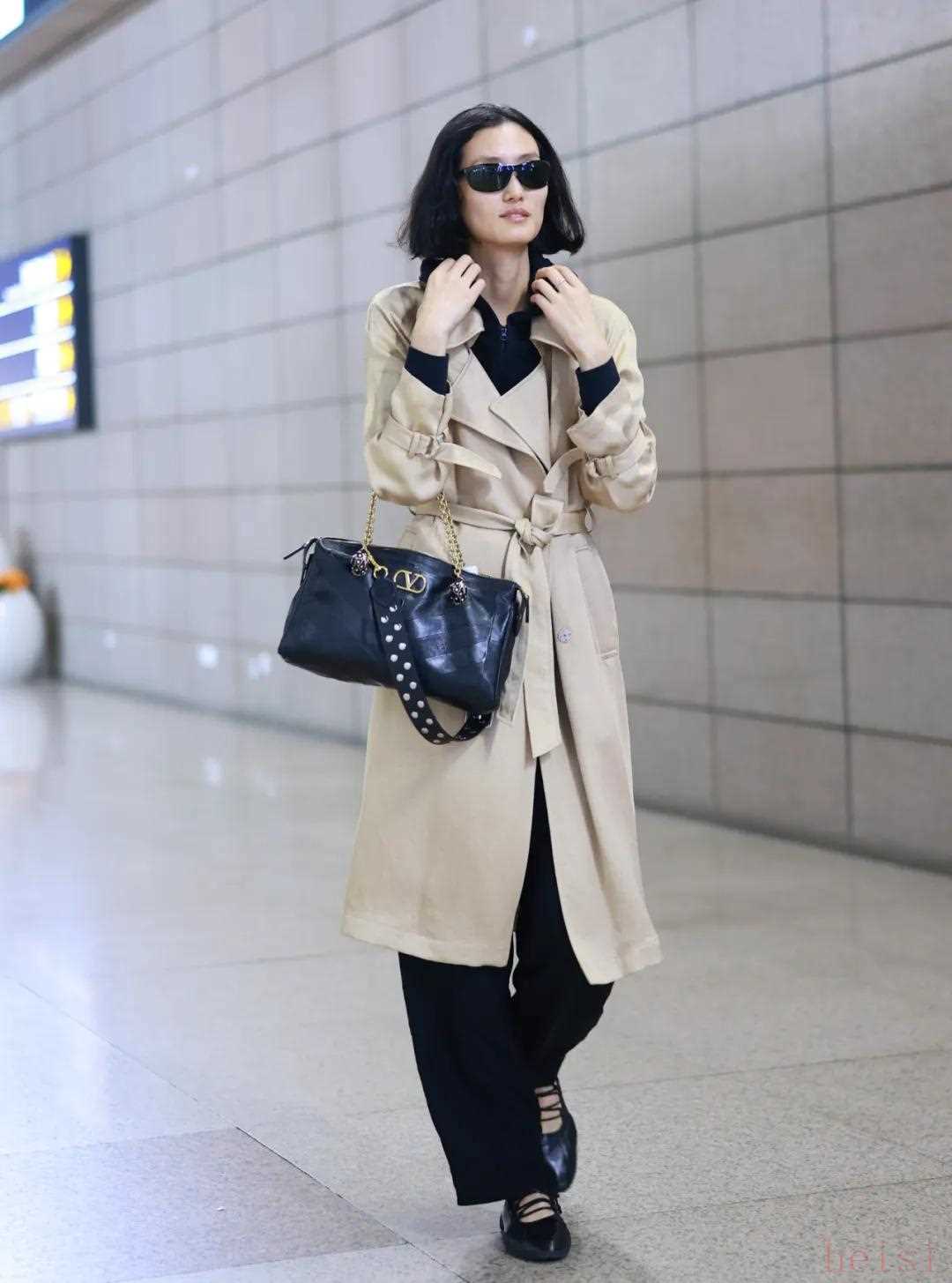 18厘米金屬提手則適用性更廣,超模張麗娜搭配風(fēng)衣Look時(shí),就切換手臂斜挎、手拎兩種姿勢,怎么舒服怎么來~