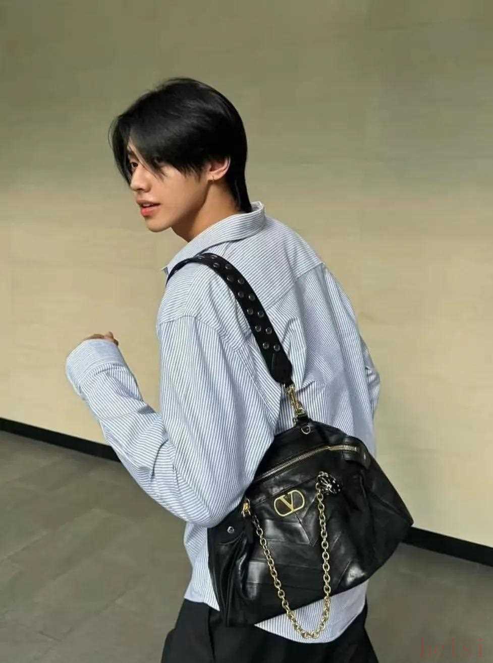 男生背Panthea則給人酷酷的感覺,包身大小對于稍微高大的身材也能適配,皮質(zhì)的鉚釘包鏈則呼應(yīng)陽光氣質(zhì)。