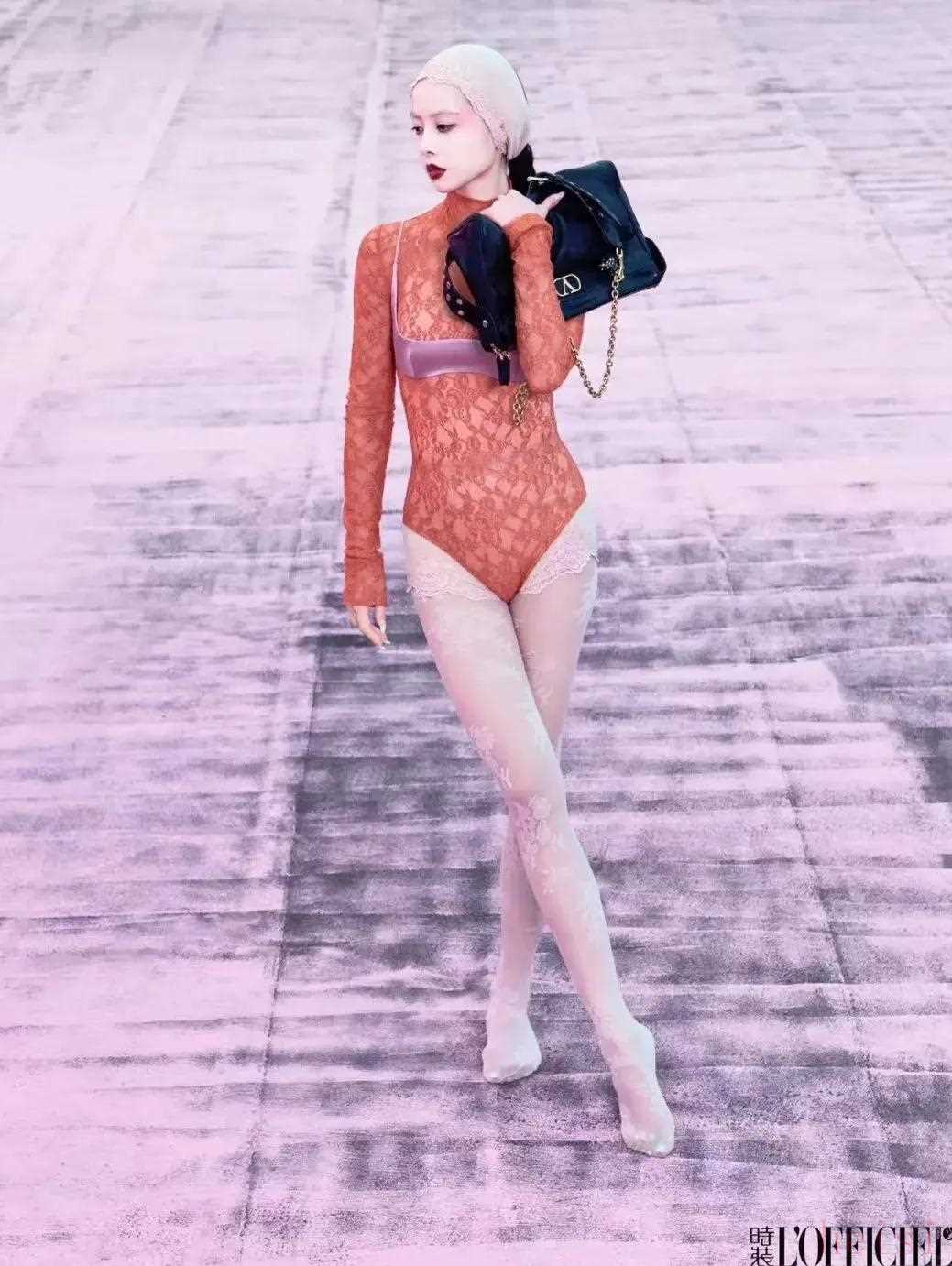 前陣子登上《時(shí)裝L'OFFICIEL》金九刊封面,她也上身了同一款,和前衛(wèi)的蕾絲裝束組隊(duì),時(shí)髦度拉滿。