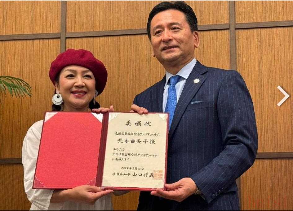 據(jù)日媒消息,上個世紀(jì)中國人熟悉的日本電視劇《排球女將》主演、日本歌手兼藝人荒木由美子,日前在家鄉(xiāng)佐賀縣舉行的九州佐賀國際機場品牌大使任命儀式上,被授予“佐賀空港宣傳形象大使”稱號。
