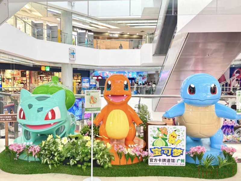 (新店開業(yè)之際,正佳廣場變身“寶可夢痛樓”,各處遍布寶可夢元素。)沉浸式寶可夢體驗空間開啟多維體驗新店開業(yè)之際,正佳廣場變身“寶可夢痛樓”,各處遍布寶可夢元素:廣場東南門外矗立起高達7米的巨型皮卡丘氣模,東北門外則設(shè)有巨型精靈球裝置,一樓中庭天空舞臺更迎來了7米高的巨型新葉喵氣模裝置,吸引大量粉絲打卡互動。步入場內(nèi),抬頭望去,多款集換式卡牌懸掛其中,還能隨時邂逅多處DP打卡點。當(dāng)走進這座全國最大的寶可夢官方卡牌道館時,可玩、可拍、可購的沉浸式體驗更是被推向極致——標志性的藍白主色調(diào)構(gòu)筑出開闊明亮的“訓(xùn)練家殿堂”,空間以道館理念精心規(guī)劃,囊括了琳瑯滿目的零售殿堂與熱血沸騰的游戲?qū)?zhàn)核心區(qū)。零售區(qū)匯聚全球同步發(fā)售的寶可夢卡牌、限定周邊等,并將有眾多首發(fā)新品在此揭開神秘面紗;而對戰(zhàn)區(qū)則是策略與激情的碰撞場,玩家們可以在此拆封心儀卡包、切磋牌技,未來這里也將成為本地卡牌社群交流與官方活動的重要中心。
