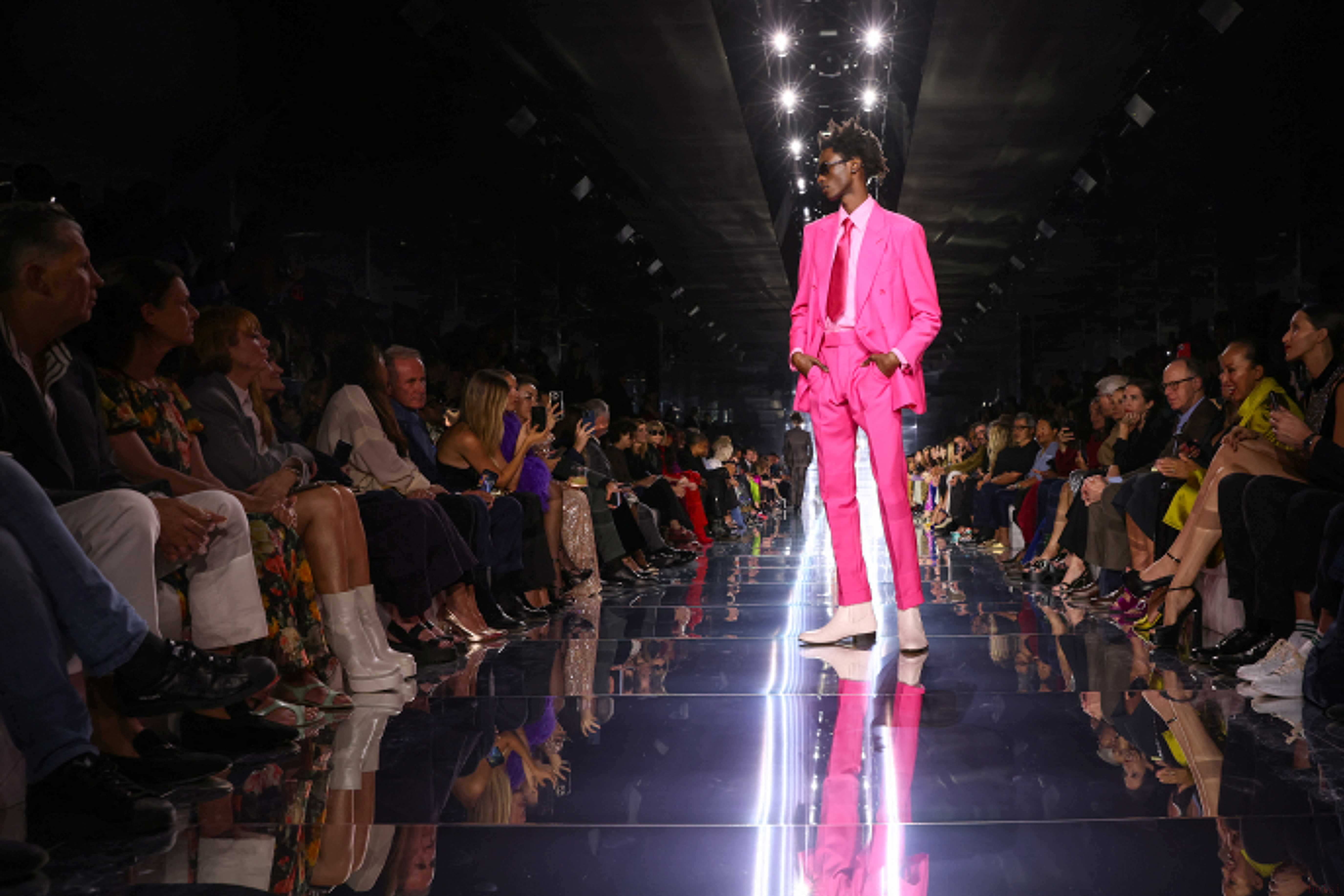 9月14日,模特在美國(guó)紐約時(shí)裝周上展示Tom Ford品牌的2023春夏新款時(shí)裝。 新華社/路透