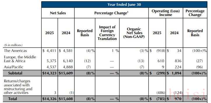營(yíng)業(yè)利潤(rùn)方面,美洲地區(qū)由盈轉(zhuǎn)虧,從上年同期盈利0.34億美元(約合人民幣2.44億元)轉(zhuǎn)為虧損9.18億美元(約合人民幣65.89億元),同比跌幅超100%;EMEA地區(qū)、亞洲/太平洋地區(qū)則均錄得兩位數(shù)下滑,跌幅分別達(dá)27%、96%。