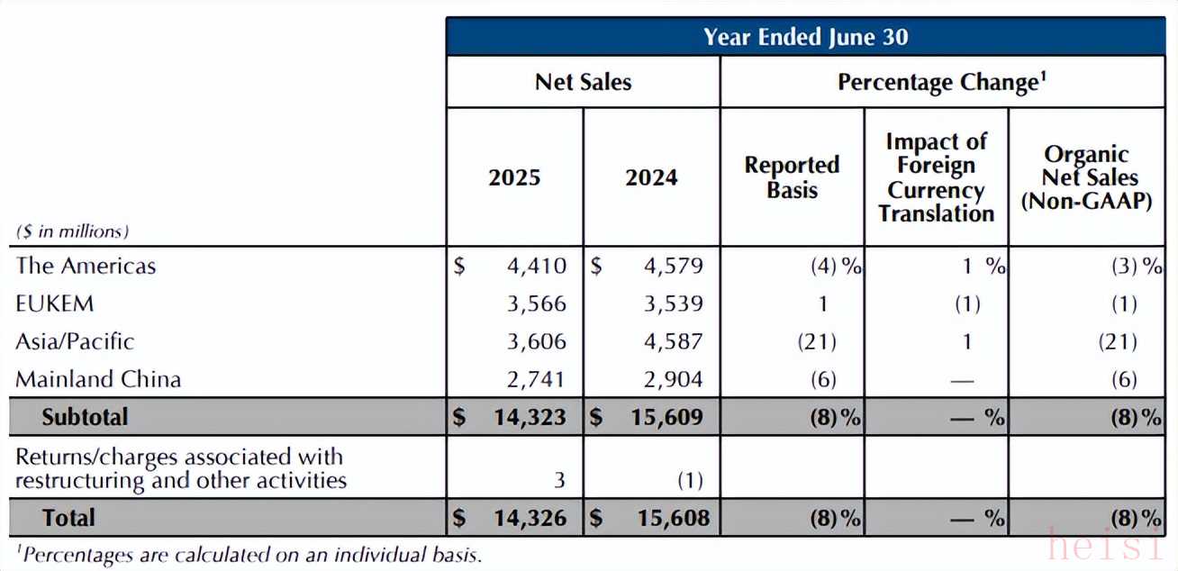 此外,中國(guó)大陸的凈銷售額錄得中個(gè)位數(shù)下滑,這主要是受整體零售環(huán)境,包括消費(fèi)者情緒低迷的影響。2025財(cái)年上半年凈銷售額的下降,抵消了下半年因創(chuàng)新、有針對(duì)性地?cái)U(kuò)大消費(fèi)人群及關(guān)鍵購(gòu)物節(jié)點(diǎn)的成功所帶來(lái)的增長(zhǎng)。
