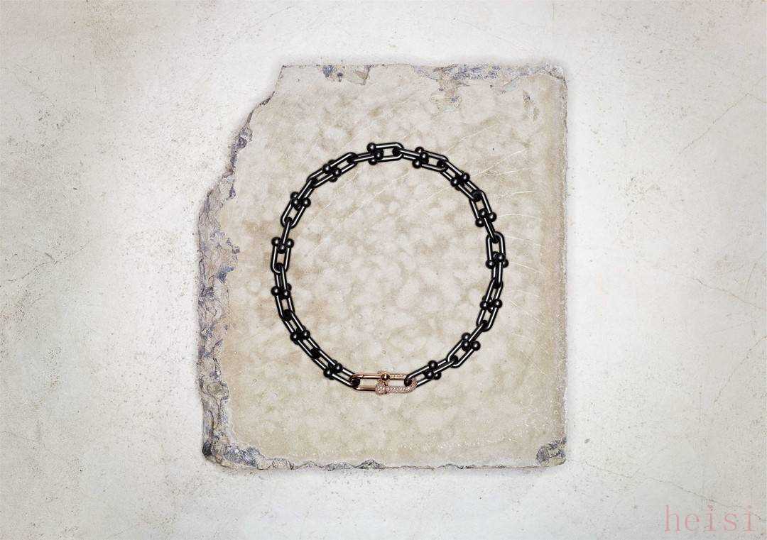 Tiffany & Co. 蒂芙尼HardWear系列黑色鈦金及18K玫瑰金鋪鑲鉆石鏈環(huán)手鏈
