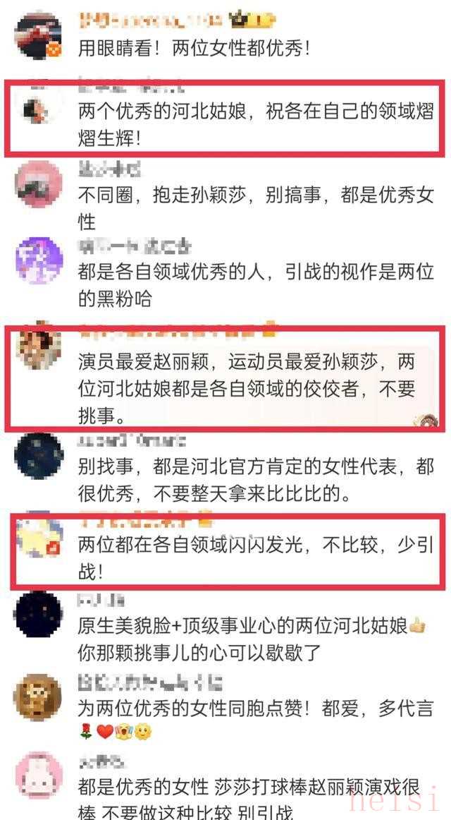 看到有人挑事,很多網(wǎng)友站出來說話了。他們說:“兩個優(yōu)秀的河北姑娘,祝各在自己的領(lǐng)域熠熠生輝“,“都是優(yōu)秀的女性,不要做這種比較,別引戰(zhàn)“。