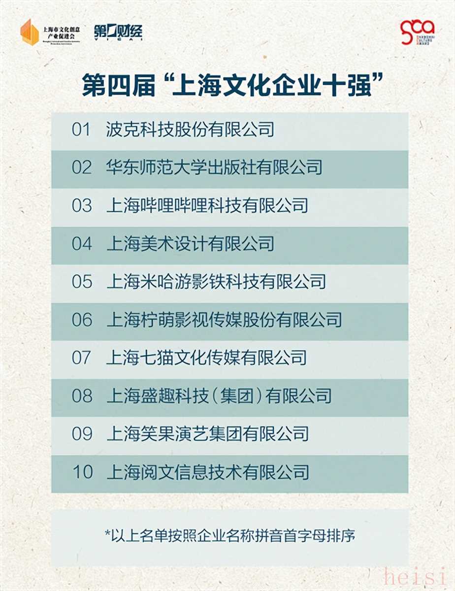 1. "第四屆上海文化企業(yè)十強(qiáng) (Top 10 Shanghai Cultural Enterprises):"