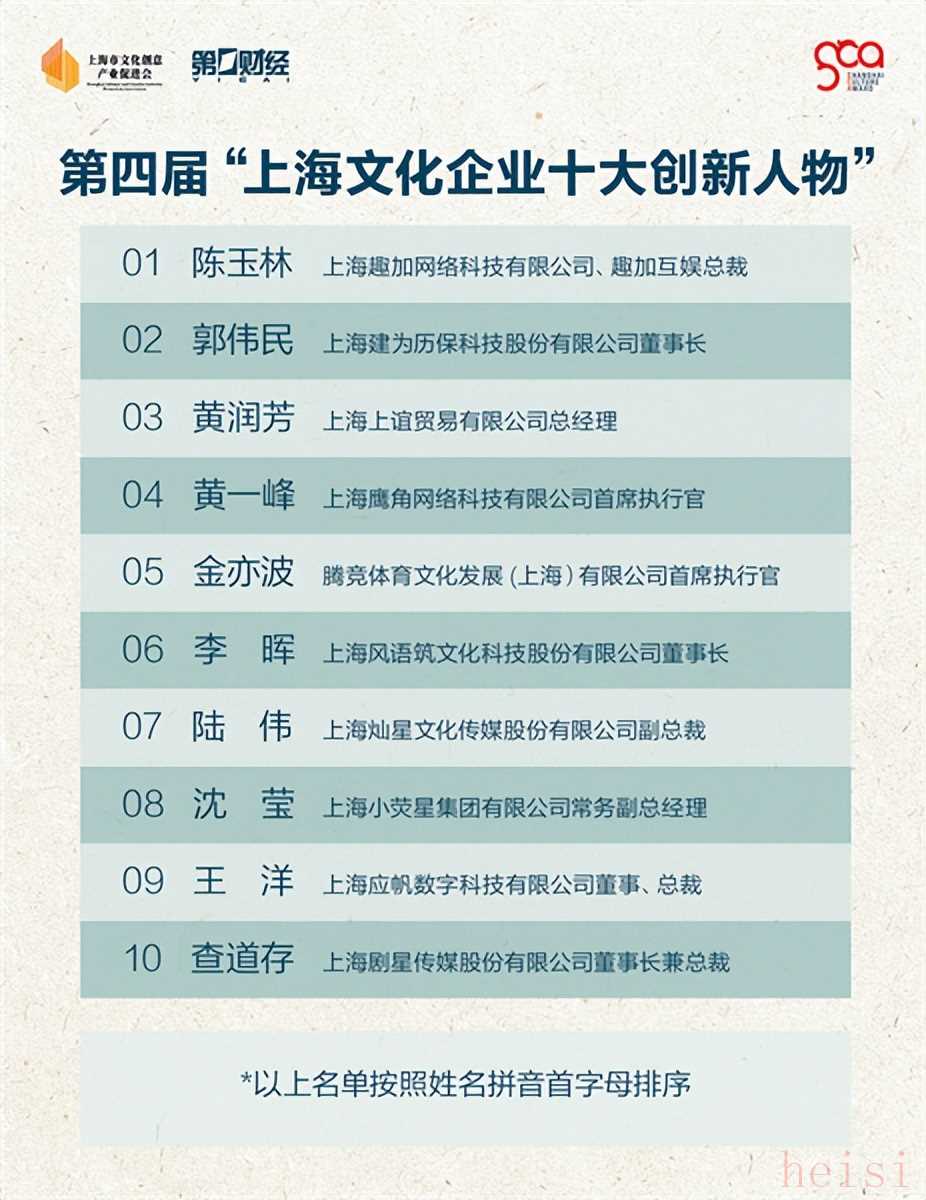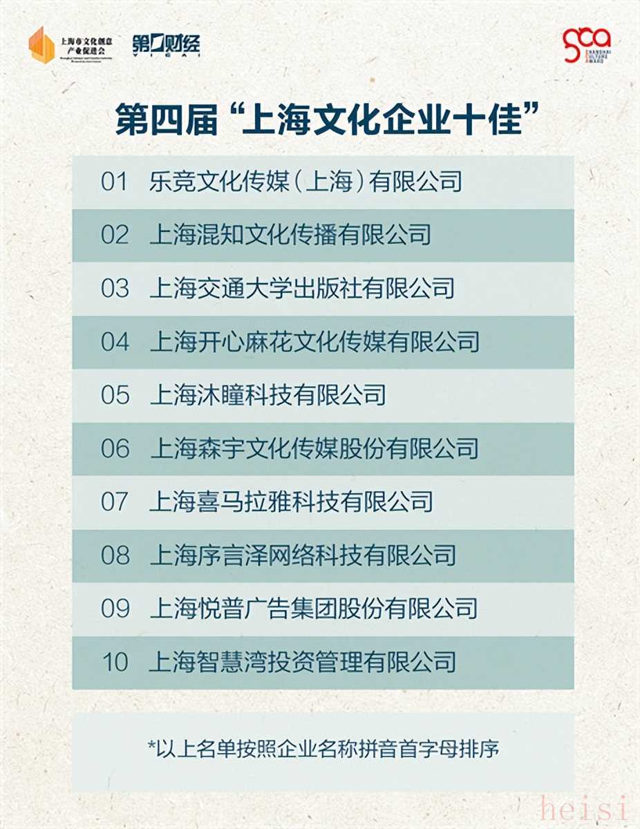 這是關(guān)于“第四屆上海文化企業(yè)十強(qiáng)十佳十人十大品牌”揭曉的相關(guān)信息: