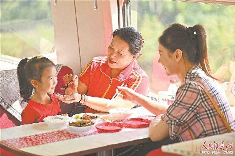今年以來(lái),中國(guó)鐵路鄭州局集團(tuán)有限公司聚焦讓旅客樂(lè)享“一盒好飯”,著力打造“品味中原”餐飲文化品牌,結(jié)合地域特色創(chuàng)新豐富列車(chē)餐食品類(lèi),積極提升列車(chē)餐飲服務(wù)質(zhì)量,有效保障旅客個(gè)性化用餐需求。圖為近日,G3117次列車(chē)旅客在列車(chē)餐車(chē)上品嘗小碗菜。王 瑋 攝