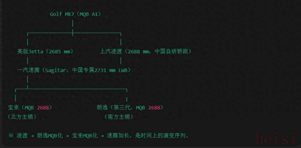 大眾凌渡 (MQB,中國上汽大眾) 軸距:約 2688 mm 。 還有一汽寶來,上汽朗逸,軸距都是2688,外加一汽速騰。這四個A級車的淵源都是啥?上市時間?那個平臺魔改的?