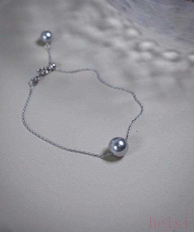 這款手鏈只選一顆天然灰珍珠,懸于纖細鏈身之間。