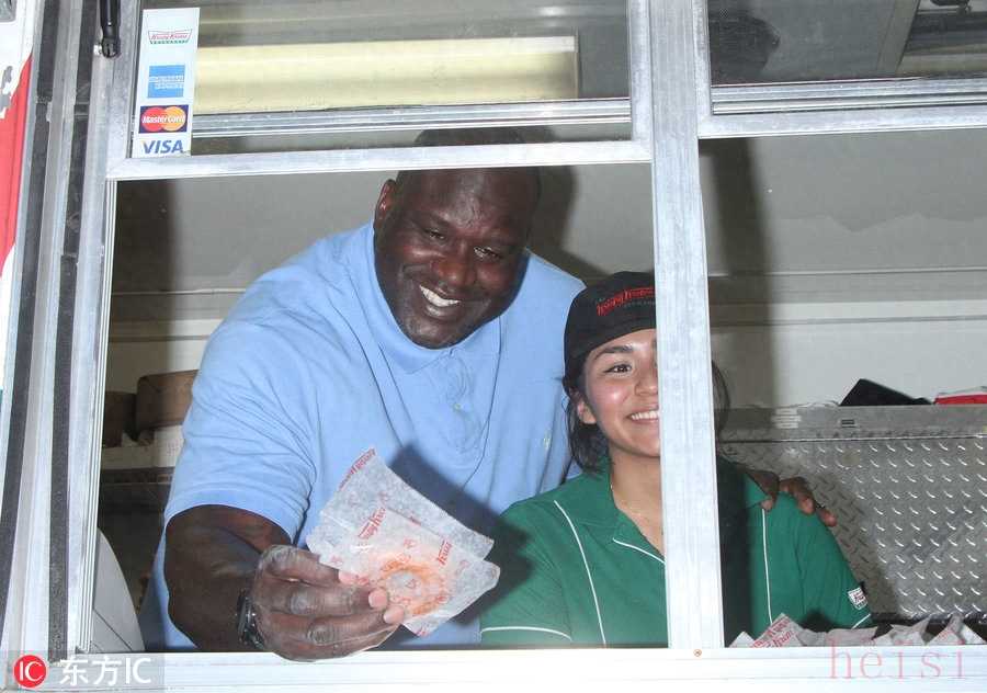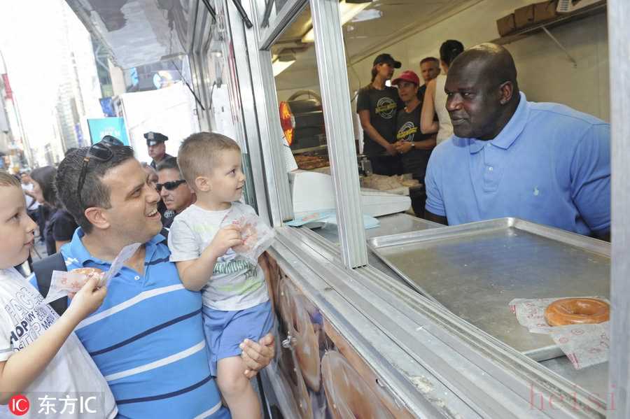 當(dāng)?shù)貢r間2017年7月13日,美國紐約,奧尼爾出席某餐飲品牌80周年慶,充當(dāng)售貨員人氣火爆。(圖片署名: 東方IC) "