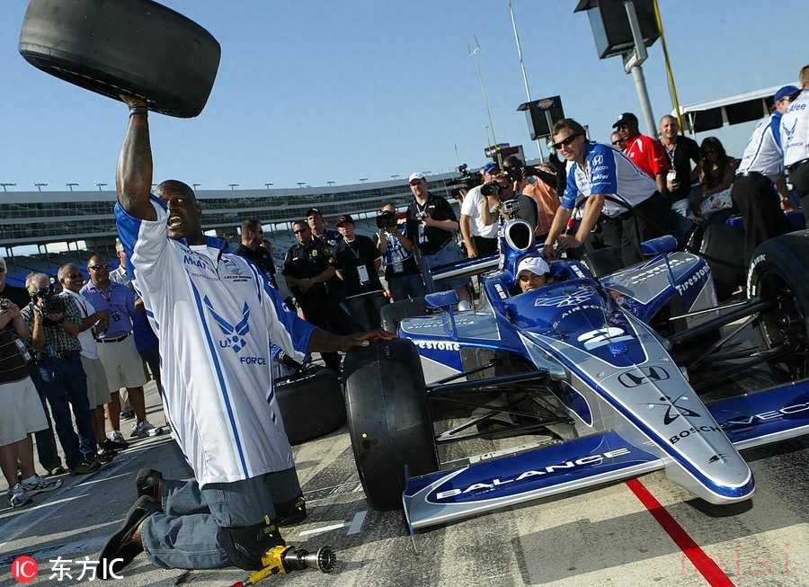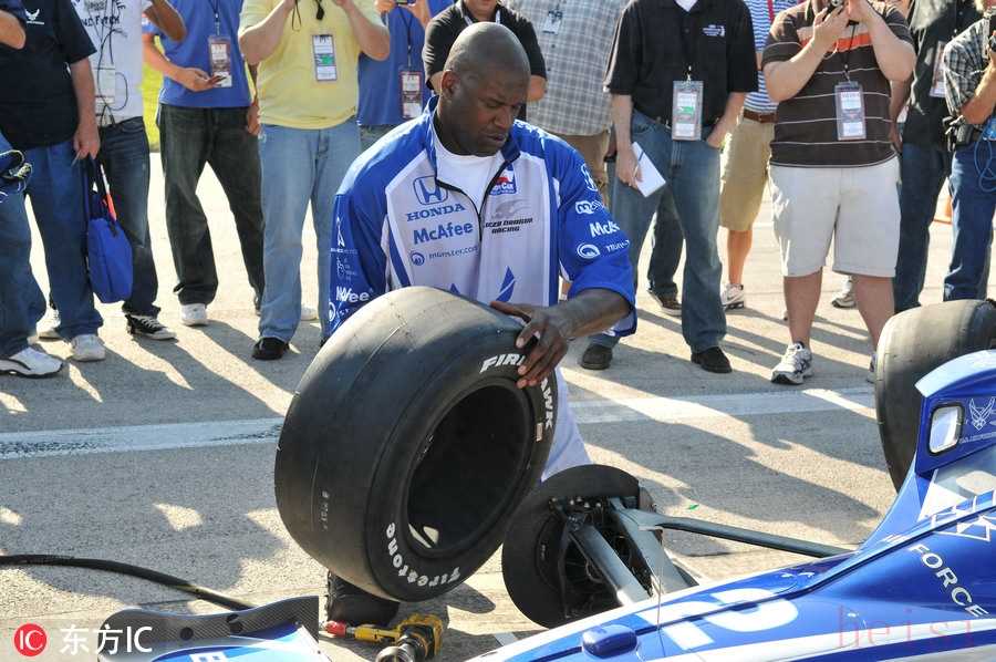 塊頭最大的換胎工。(圖片署名: 東方IC) "