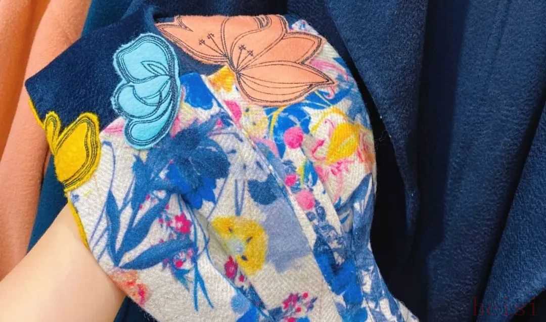 2. "雙面設(shè)計(jì):" 這是最關(guān)鍵的特點(diǎn)。通常一面是光滑的絲綢或提花織物,另一面是柔軟的羊絨。兩面風(fēng)格可以不同,提供了更多搭配可能性。