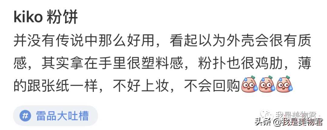 差評來得猛烈。主要集中在卡粉,浮粉,甚至還有網(wǎng)友攻擊了它的粉撲。