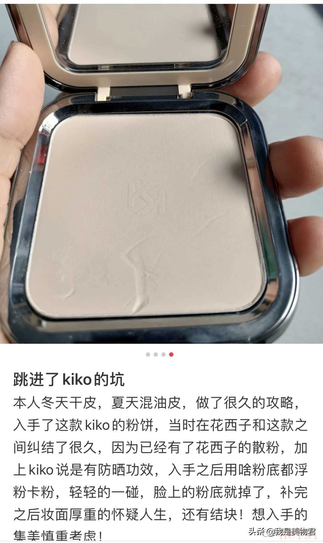 從大美親測可以看出,粉感確實強(qiáng),特別是在手部涂了手霜的情況下。但是,大美要說句公道話,首先它是實打?qū)嵉膯」夥埏?,價位不超過200,這樣的配置,你自己首先心里就要有數(shù),不然大牌子動輒500甚至上千的粉餅,都是裝樣子的嗎?遺憾的是,噴了噴霧濕用,KIKO的粉感依然明顯。