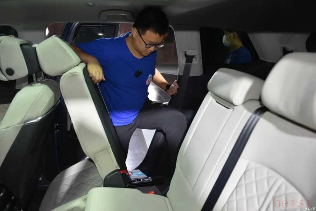 左右滑動查看更多空間演示圖空間方面,自然是Q6的強項,我們以7座版為例,體驗者身高173cm,無論是前后排都能獲得不錯的乘坐空間,第二排座椅的前移幅度足夠大,同時進出第三排也不會覺得太過擁擠。在同時放下第二、三排座椅后,形成的純平地臺非常方便大件物品的儲存。