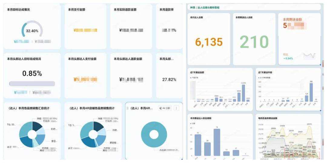 AlmondRocks部分產(chǎn)品這種對(duì)設(shè)計(jì)感和面料的堅(jiān)持,逐漸為AlmondRocks贏得市場(chǎng)認(rèn)可。品牌成功吸引了一批注重生活品質(zhì)、崇尚個(gè)性表達(dá)的年輕消費(fèi)者,也建立起以天貓為核心、覆蓋多平臺(tái)的銷售網(wǎng)絡(luò)。天貓目前貢獻(xiàn)了品牌的主要銷售額,與此同時(shí),AlmondRocks也通過小紅書、抖音等內(nèi)容平臺(tái)進(jìn)行種草和達(dá)人直播。但全渠道經(jīng)營(yíng)也帶來了更復(fù)雜的管理挑戰(zhàn)。從起初的幾百個(gè)種草達(dá)人開始,現(xiàn)如今AlmondRocks已經(jīng)合作了超6000名活躍在不同社媒平臺(tái)的達(dá)人。這些達(dá)人的建聯(lián)、合作、寄樣、發(fā)帖和效果追蹤全過程都由4名商務(wù)主要負(fù)責(zé),隨著合作規(guī)模的逐漸增加,員工常被陷在流程性的重復(fù)勞動(dòng)里。“他們?nèi)粘5拇蟛糠謺r(shí)間,就是在查信息、導(dǎo)數(shù)據(jù)、做表格上......”AlmondRocks內(nèi)容電商平臺(tái)負(fù)責(zé)人吳限坦言,長(zhǎng)期從事重復(fù)性高的工作,讓人很難獲得工作價(jià)值感。而且報(bào)價(jià)、合同、物流信息、內(nèi)容腳本這些信息還分散在不同的文件和溝通軟件里,很容易出差錯(cuò)。身處一線的商務(wù)專員山竹對(duì)我們說,“以前開周會(huì)前,我們一定會(huì)加班到很晚,因?yàn)閰R報(bào)的數(shù)據(jù)得在那天整理出來。”我們幾乎可以想象這樣一個(gè)場(chǎng)景:對(duì)一線商務(wù)、運(yùn)營(yíng)來說,每周例會(huì)前的那天晚上,電腦屏幕上會(huì)同時(shí)開著七八個(gè)網(wǎng)頁、多個(gè)Excel表格,以及無數(shù)個(gè)用于確認(rèn)細(xì)節(jié)的微信聊天窗口。員工需要從這些散亂的信息中,手工“打撈”出過去一周所有達(dá)人的數(shù)據(jù),比如筆記鏈接、點(diǎn)贊評(píng)論、商品鏈接,再逐一復(fù)制、粘貼、校對(duì),整合成一份看似統(tǒng)一的周報(bào)。可見,對(duì)于AlmondRocks這樣全渠道經(jīng)營(yíng)的電商創(chuàng)業(yè)公司來說,有限的組織和人力,讓品牌始終面臨幾個(gè)經(jīng)營(yíng)痛點(diǎn):多個(gè)平臺(tái)的達(dá)人合作和品牌投入需要看回報(bào)率,并做數(shù)據(jù)預(yù)測(cè),但數(shù)據(jù)碎片化嚴(yán)重,整合成本高;缺乏有效工具管理達(dá)人從建聯(lián)、合作到效果的標(biāo)準(zhǔn)化流程——畢竟對(duì)于成長(zhǎng)中的中小品牌而言,引入一套SaaS系統(tǒng)不僅成本高,而且被交付后的系統(tǒng),往往難以動(dòng)態(tài)地隨著業(yè)務(wù)的演進(jìn)而升級(jí)。員工的離職變動(dòng)容易導(dǎo)致業(yè)務(wù)數(shù)據(jù)丟失,對(duì)公司造成風(fēng)險(xiǎn);而且隨著業(yè)務(wù)量增長(zhǎng),Excel表格已無法滿足管理需求——表格越來越大,數(shù)據(jù)越來越多,實(shí)時(shí)性差、錯(cuò)誤率高,很容易讓人想到類似軟件歷經(jīng)多年更新后積重難返的“代碼屎山”。早在2017年,AlmondRocks就開始使用釘釘辦公,但最初只用于基礎(chǔ)的溝通協(xié)同、會(huì)議和OA審批等行政和管理事務(wù)。“用得比較淺”,張琪坦言。后來,隨著達(dá)人與數(shù)據(jù)管理等問題日益復(fù)雜化,他也意識(shí)到,或許需要一套更智能的解決方案。今年,AlmondRocks開始將具體業(yè)務(wù)搬到到釘釘AI表格上。如今,這位創(chuàng)始人告訴我們,“公司現(xiàn)在有50來號(hào)人,有一半人都在這張表上工作”。