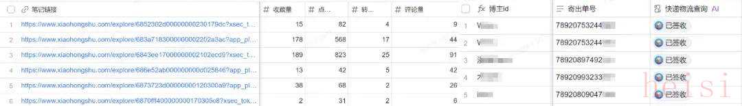 在談到產(chǎn)品設(shè)計(jì)時(shí),張琪頻繁提到一個(gè)詞,“迭代”,他認(rèn)為產(chǎn)品的設(shè)計(jì)本身就應(yīng)當(dāng)去基于社會(huì)的不同階段、變化而進(jìn)行不斷地迭代,去適應(yīng)社會(huì)的需求,這也是企業(yè)的一種長(zhǎng)期主義。比如像襪子這種被慣性地視作“基礎(chǔ)款”的產(chǎn)品,AlmondRocks選擇為之注入理念與設(shè)計(jì),這就是迎合情緒消費(fèi)盛行的大背景下,襪子作為產(chǎn)品本身在定義上的迭代。我們也認(rèn)為,如果一家消費(fèi)品企業(yè),決定讓AI深度參與其經(jīng)營(yíng),這當(dāng)然也是一種企業(yè)組織架構(gòu)和創(chuàng)始人經(jīng)營(yíng)理念的“自覺迭代”。AlmondRocks目前更多地將“AI表格”應(yīng)用在種草和直播兩大業(yè)務(wù)場(chǎng)景上。1.智能化達(dá)人管理系統(tǒng):“種草”場(chǎng)景的效能提升在AlmondRocks,團(tuán)隊(duì)與“AI表格”的配合,更像是一場(chǎng)不動(dòng)聲色的工作流程煥新。吳限分享了一個(gè)細(xì)節(jié):“不同于過去在Excel表上頻繁的數(shù)據(jù)手動(dòng)錄入,如今只需把筆記鏈接輸入表格,設(shè)置相應(yīng)的AI字段,AI表格就能自動(dòng)抓取點(diǎn)評(píng)贊和評(píng)論數(shù)據(jù),連寄樣物流狀態(tài)也能實(shí)時(shí)更新,讓人可以從重復(fù)操作中抽身了。”這一轉(zhuǎn)變,具體滲透在團(tuán)隊(duì)日常的協(xié)作節(jié)奏中:- 一張表,聚合所有達(dá)人信息