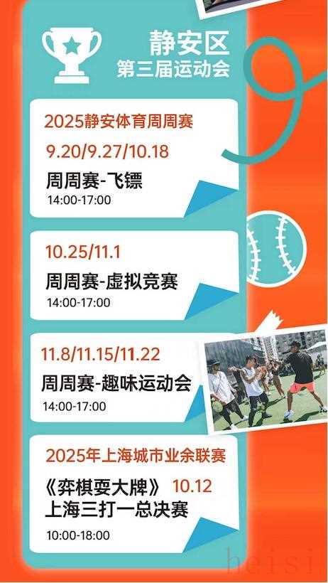 另外,“靜安區(qū)第三屆運(yùn)動(dòng)會(huì)《弈棋耍大牌》上海三打一總決賽”“周周賽飛鏢決賽”“萌寵走秀”“周周賽虛擬競賽”等系列運(yùn)動(dòng)季活動(dòng)也將在商場陸續(xù)開展。