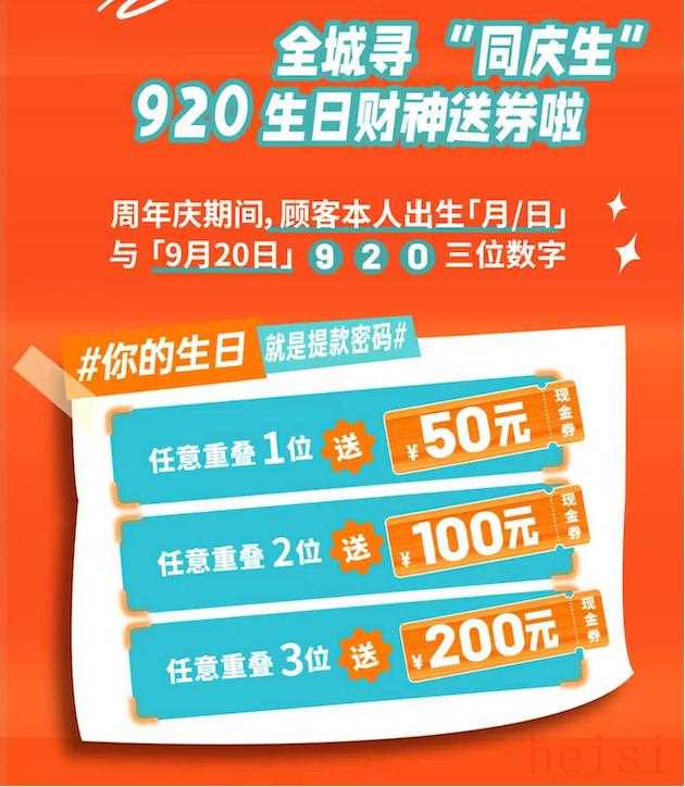 周年慶期間,上海金融街購物中心開展“全城尋找與金融街購物中心同天慶生的人”活動(dòng)。若顧客本人出生“月/日”與“9月20日”9、2、0三位數(shù)字任意重疊1位,即送50元現(xiàn)金券;重疊2位升級(jí)100元;重疊3位,即送200元現(xiàn)金券。
