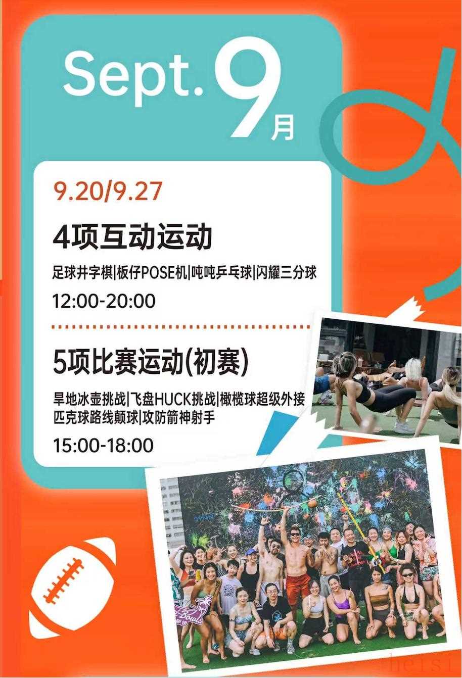 9月27日,將進(jìn)行“5項(xiàng)比賽運(yùn)動(dòng)(初賽)”與“周周賽飛鏢初賽”,并增設(shè)“薛之謙歌迷會(huì)”豐富線下運(yùn)動(dòng)活動(dòng)氛圍;