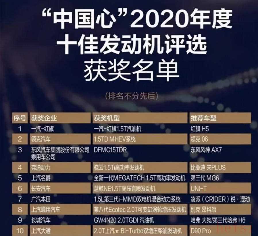 沃德十佳發(fā)動機不帶中國玩,但中國有自己的發(fā)動機評選榜單,那就是“中國心”十佳發(fā)動機。