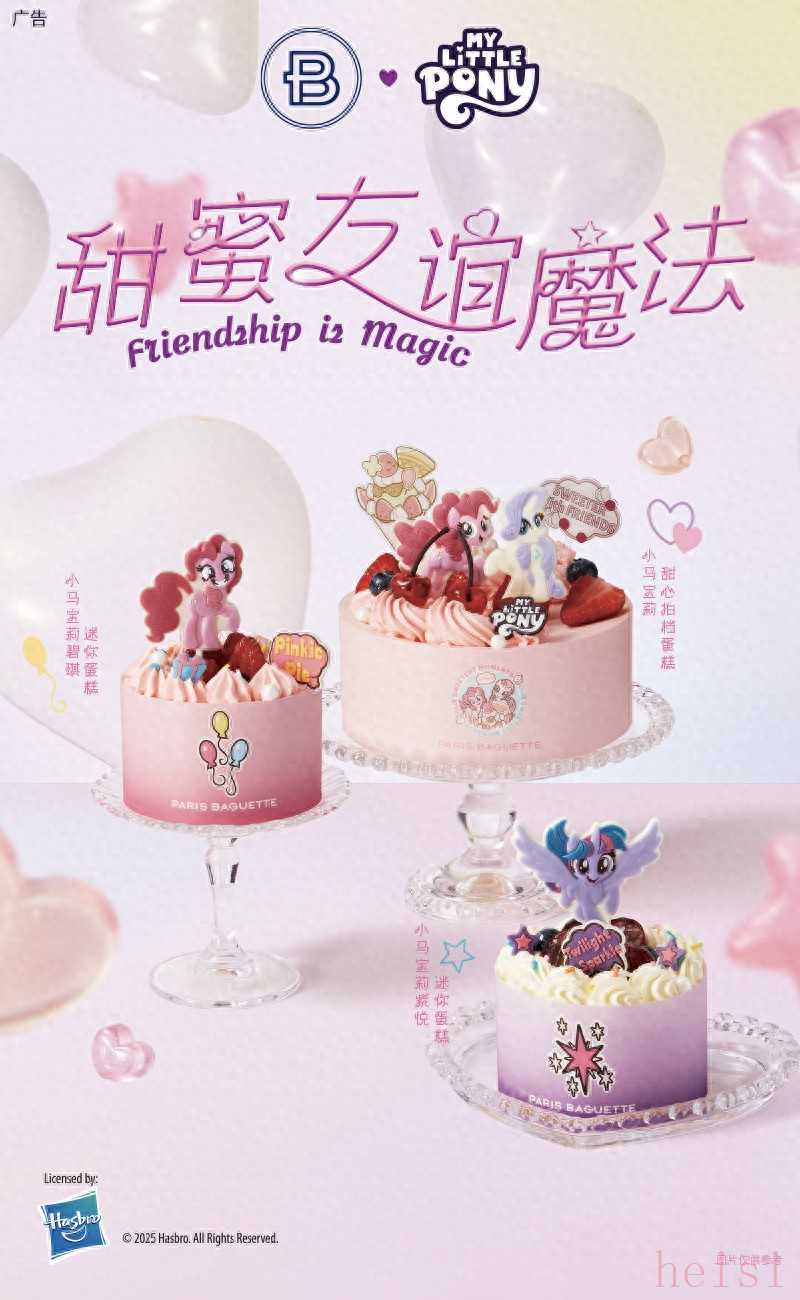 為迎接即將到來的六一國際兒童節(jié),巴黎貝甜(Paris Baguette)正式官宣與人氣動畫IP“小馬寶莉”(My Little Pony)展開夢幻聯(lián)動,以“友誼魔法啟動,快樂一口到位”為主題,推出限定聯(lián)名蛋糕系列及周邊。該系列巧妙融合小馬寶莉標志性的魔法元素與歡樂精神,旨在為親子家庭打造充滿童趣與奇幻色彩的節(jié)日甜蜜體驗。