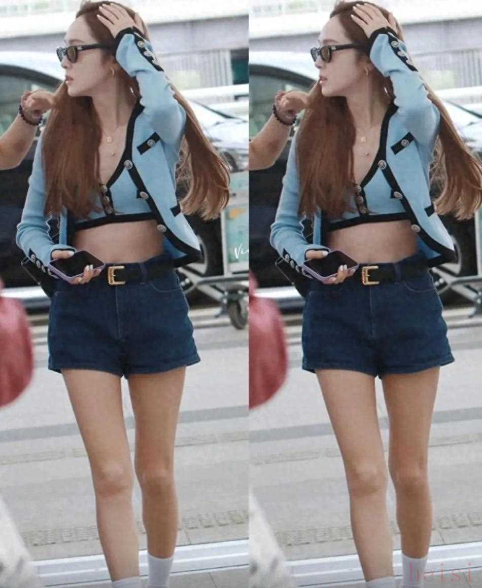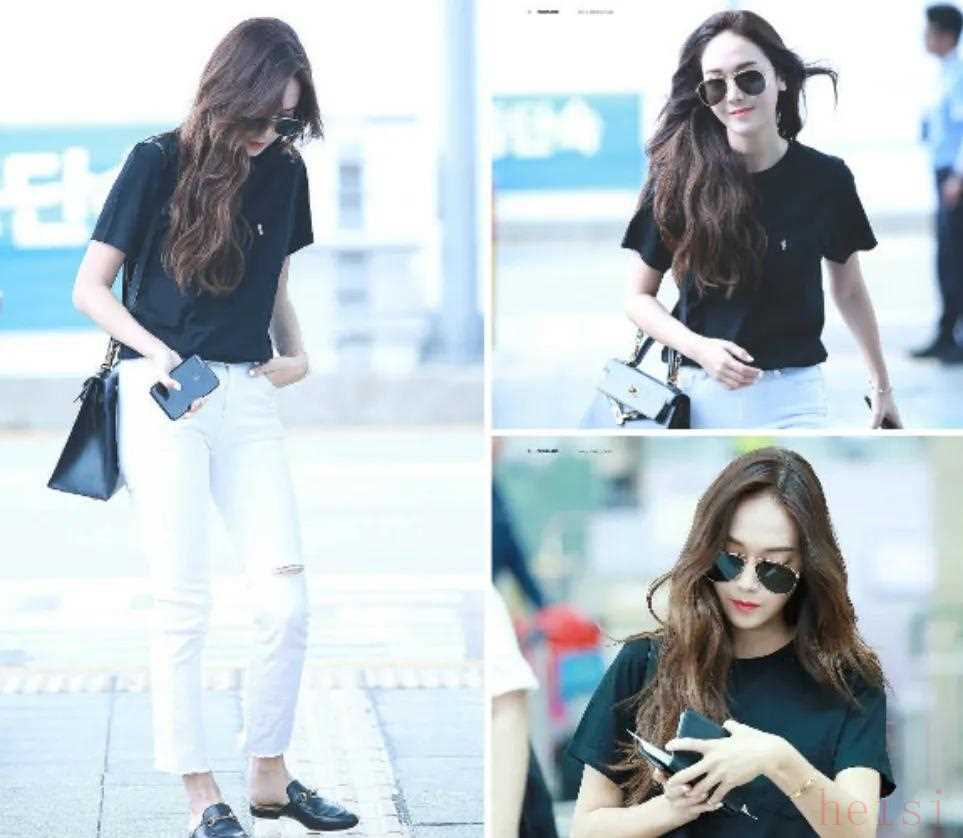 2014年《Jessica & Krystal》真人秀的熱播,堪稱初代“時(shí)尚教學(xué)范本”。姐姐鄭秀妍的藍(lán)白配色公式、毛衣搭肩大法,把基礎(chǔ)款穿出精致感;妹妹鄭秀晶的海軍風(fēng)襯衫裙、利落高腰褲,詮釋著少年感與時(shí)髦的平衡。那時(shí)的我們未必懂“effortless chic”,卻跟著她們學(xué)會(huì)把襯衫塞進(jìn)褲子、用腰帶優(yōu)化比例,連豹紋褲這種難駕馭的單品,也因她們的演繹成了潮流標(biāo)志。