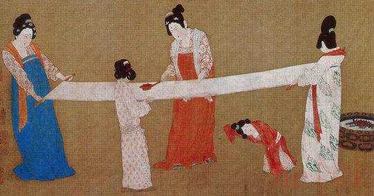 《搗練圖》中的夏布脫膠情景