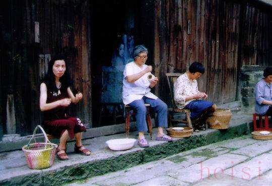 婦女們整理麻線