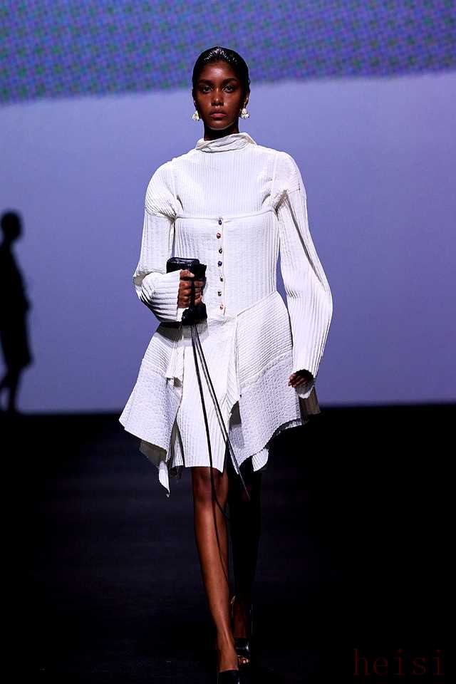 新天地魔方秀場里,燈光像沒對焦的相機(jī),一閃一閃地照出裙角故意留出的毛邊。模特走路時(shí),折紙一樣的褶裥跟著晃,像把拆開的快遞盒又折回去,卻意外地好看。觀眾不用懂解構(gòu)主義,也能一眼看懂:原來“未完成”可以比“完美”貴。