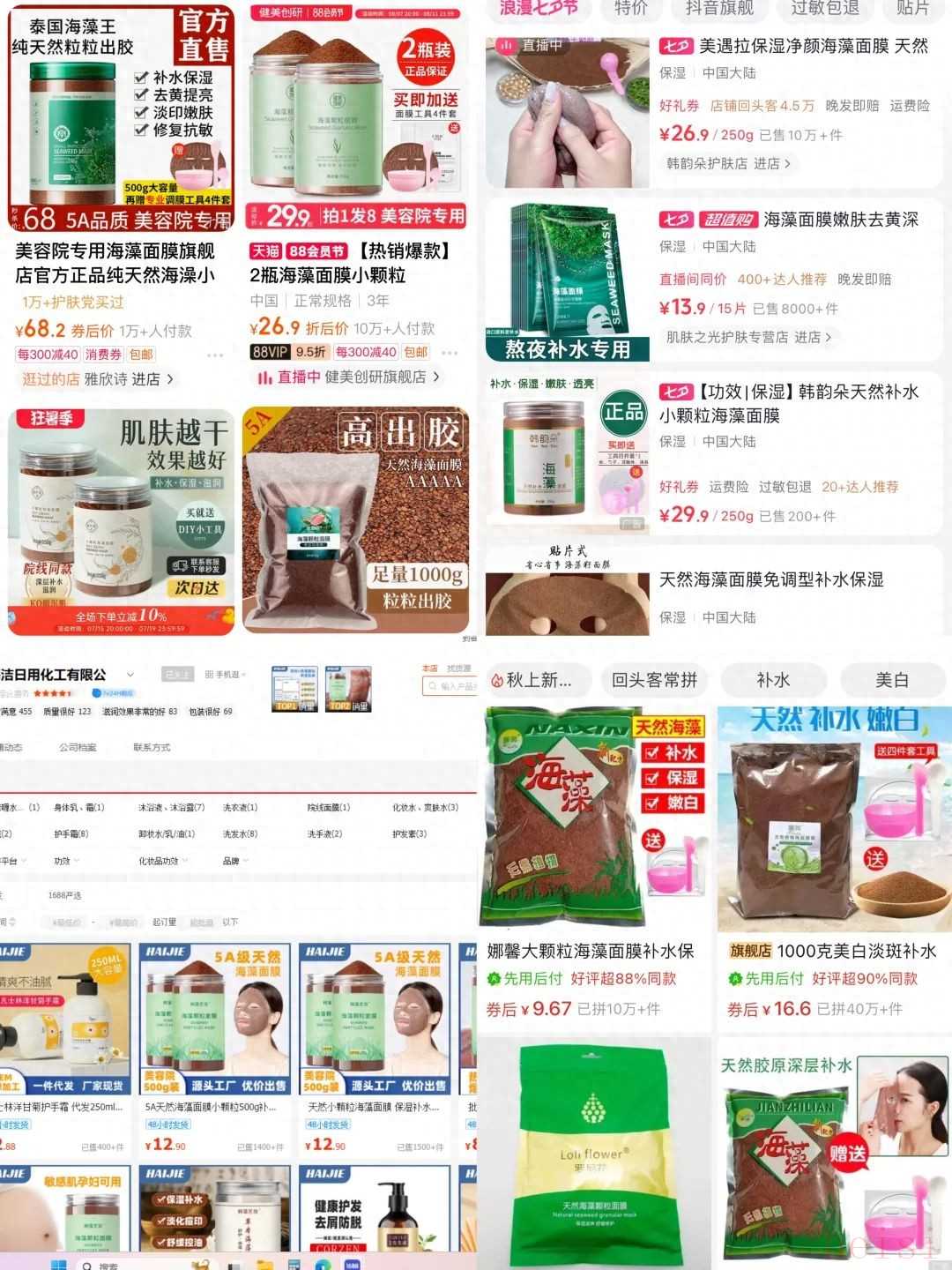 平臺在售的海藻面膜,有的店鋪銷量過萬甚至過十萬。