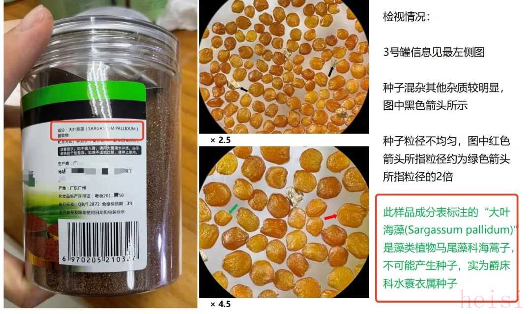 被包裝成“海藻籽”的種子,其實是“水蓑衣”種子(又名“南天仙子”),它也不在《已使用化妝品原料目錄(2021年版)》中。很容易與它混淆的毒物“天仙子”,國家藥監(jiān)局更是明令禁止用于化妝品生產(chǎn)或注冊備案。