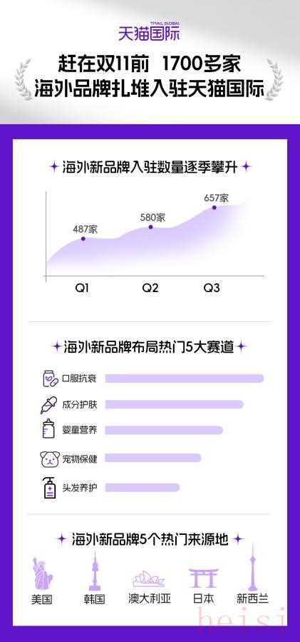 簡單來說,就是在“雙11”這個(gè)關(guān)鍵的銷售節(jié)點(diǎn),天貓平臺(tái)吸引了大量海外品牌(超過1700家)開設(shè)它們在中國的第一家線上店鋪,顯示出中國電商市場的巨大潛力和吸引力。