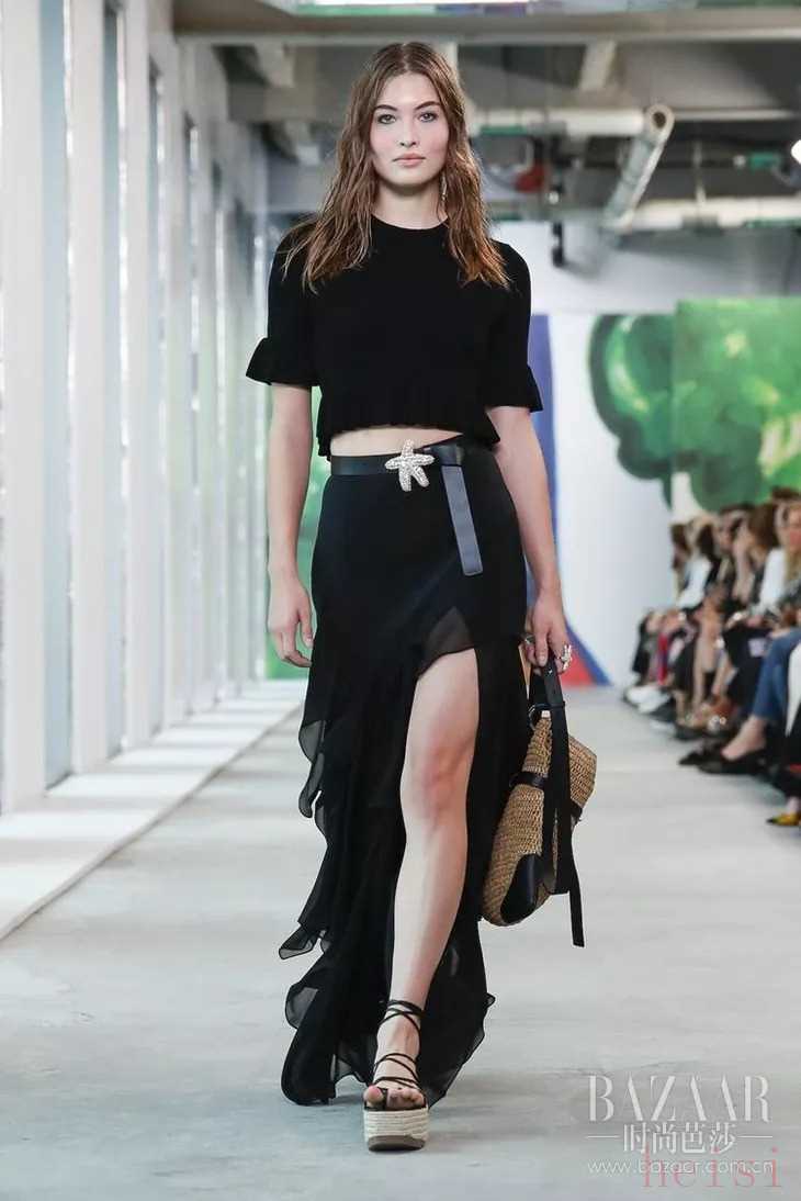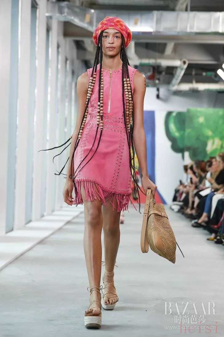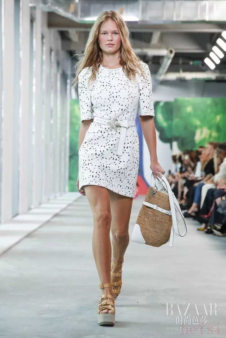 Michael Kors的秀場上自然不乏其擅長的都市摩登風(fēng)格,由一場沙灘派對完美過渡到華麗晚宴,不再有海島人群的熙熙攘攘,只有時髦女郎在都市中行走搖曳。