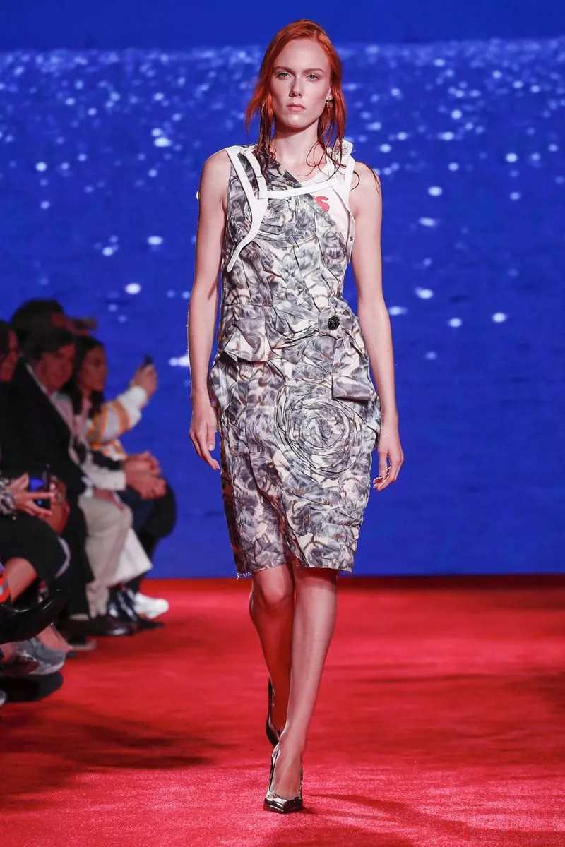 海面般波光粼粼的面料、水生生物造型的配飾、沖浪者圖案的針織衛(wèi)衣衫,它們與Pier 17碼頭和秀場中隨處可見的Christina Zimpel航海涂鴉遙相呼應(yīng),讓人雖置身秀場中,卻仿佛能嗅到海洋的氣息。條紋、斑點、豹紋、馬德拉斯格紋點綴其間, 猶如在玩味度假中暗藏的一場冒險。
