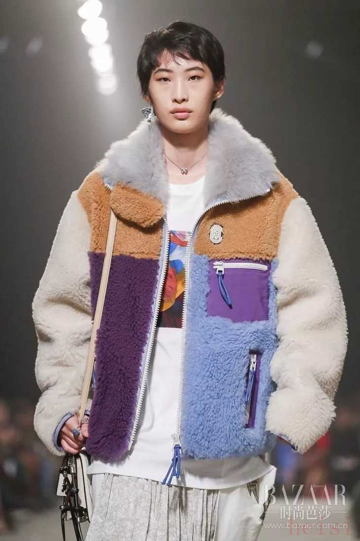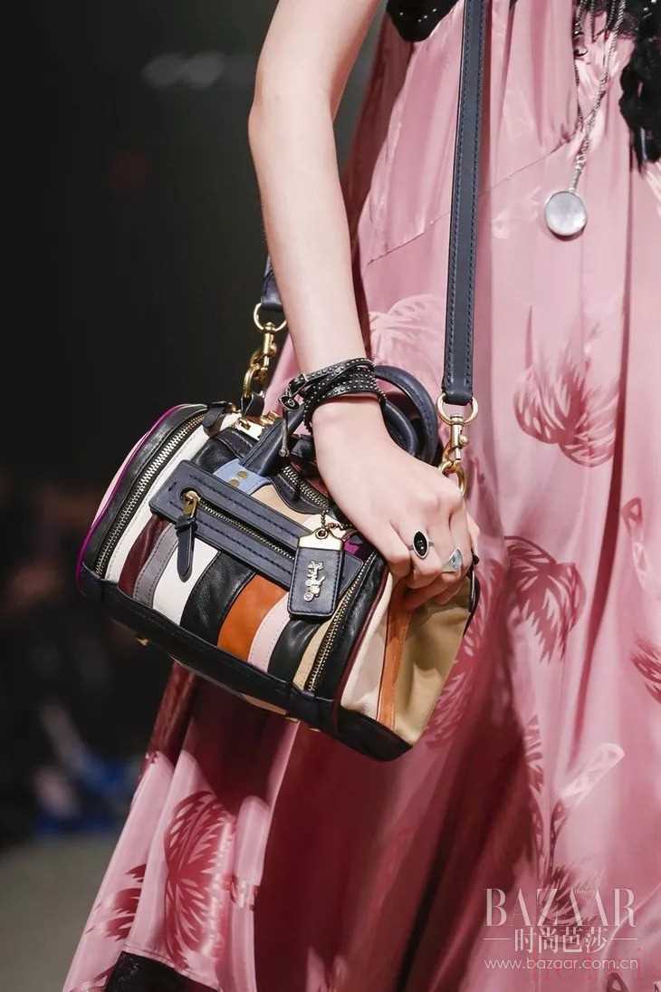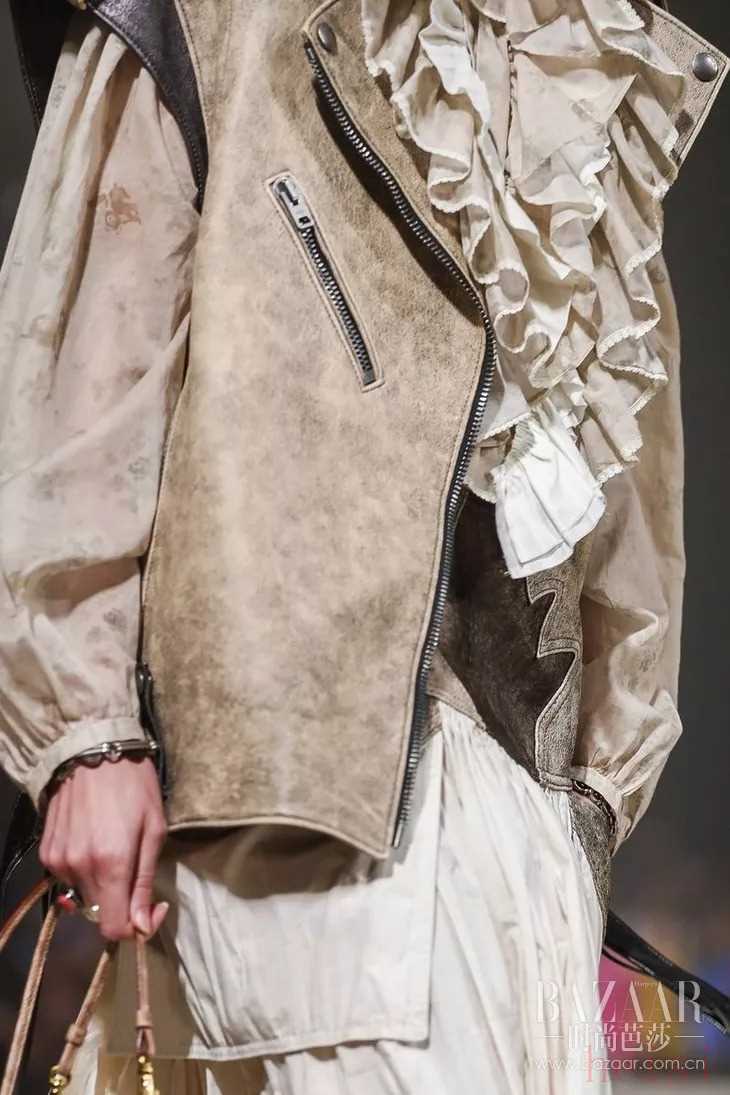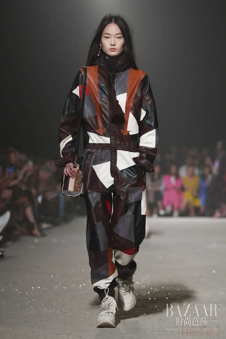 本季在許多單品上運用了色塊拼接、材質(zhì)拼接。在單純色彩拼接時,看似雜亂無章的色塊,事實亂中有序,放眼望去皆是精彩;不同的材質(zhì)拼接的時候,融入了西部牧場的麂絨皮、對稱花紋,復(fù)古浪漫的氛圍就此而生。