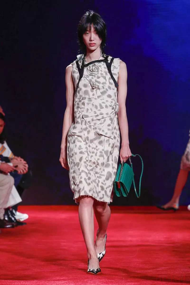 美麗的背后,往往意味著災(zāi)難的到來。那些來自上世紀(jì)60年代的雞尾酒連身裙上“艷俗”的圖案與動物紋相伴,其中還不乏一些用褶皺手法制成的浮雕質(zhì)感的玫瑰圖案,仿佛在諷刺人們的坐以待斃,眼下的一切,盡管享樂??此骑L(fēng)平浪靜,實則血腥又危險。